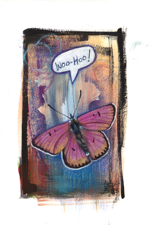 Woo Hoo! 4" x 6" acrylic and colored pencil
